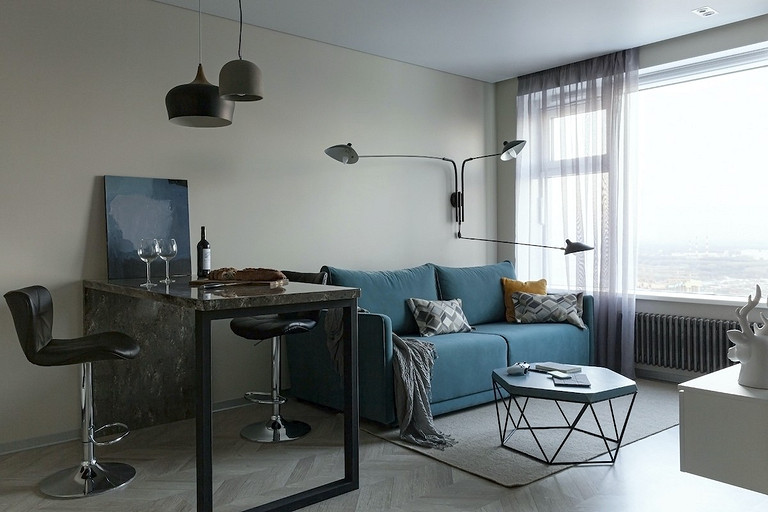 Эта квартира площадью 45 квадратных метров расположена в современном жилом комплексе в Уфе. Дизайнер оформила интерьер для студента, в котором есть все необходимое, и нет лишних вещей и зон. Читать далее...