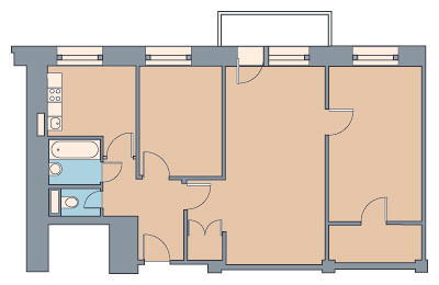 Четыре варианта перепланировки трехкомнатной квартиры общей площадью 55,93 м2 в кирпичном доме серии