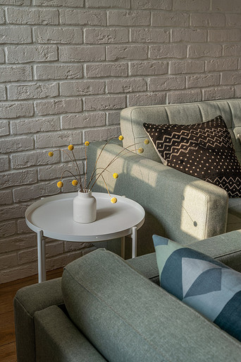 - Стены: клинкерный кирпич White Hills, краска Flugger, грифельная краска Tikkurila, экранная краска Levanille High Contrast