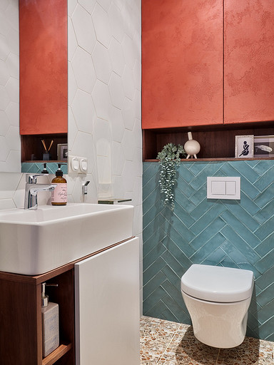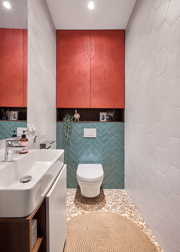 - Пол, стены: плитка Vitra Miniworx Hexagon, Atem Baden B, Equipe Masia Jade