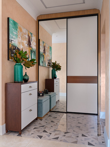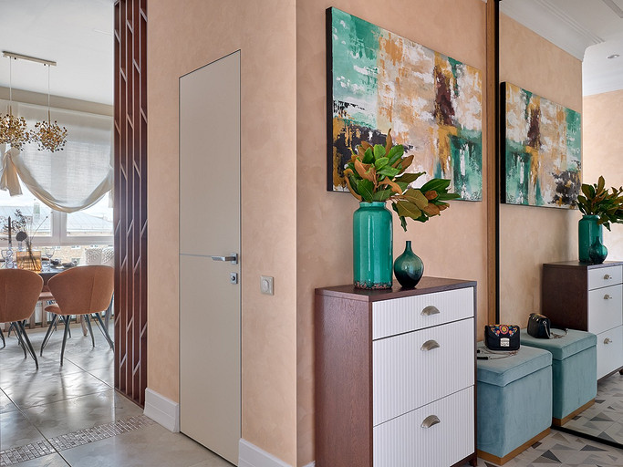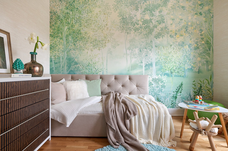 - Пол: паркетная доска Дуб Комо и Дуб Солод — Kahrs, керамогранит Absolut Keramika Borneo Decor