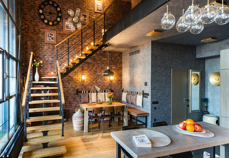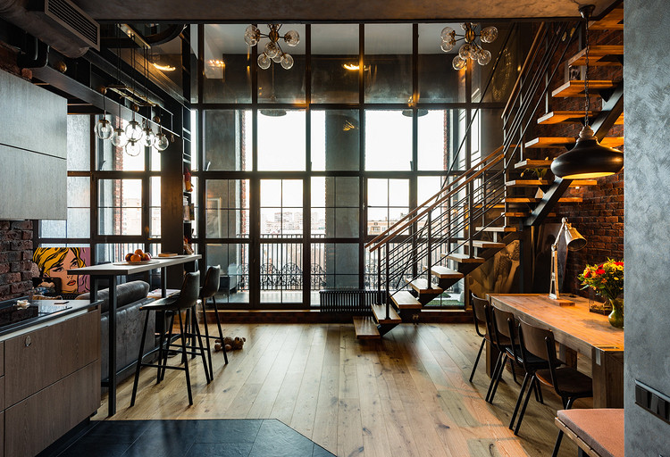 Двухуровневый лофт в Москве в перестроенном здании на территории бывшей мебельной фабрики Мюръ и Мерилиз