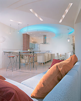 - Потолок: гипсокартон «Кнауф Гипс», краска водоэмульсионная Tikkurila