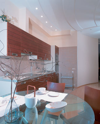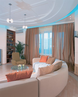 - Потолок: гипсокартон «Кнауф Гипс», краска Caparol