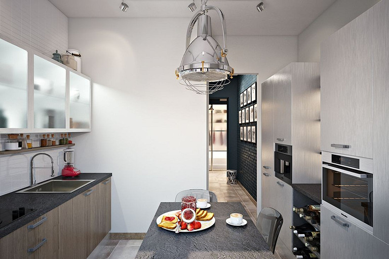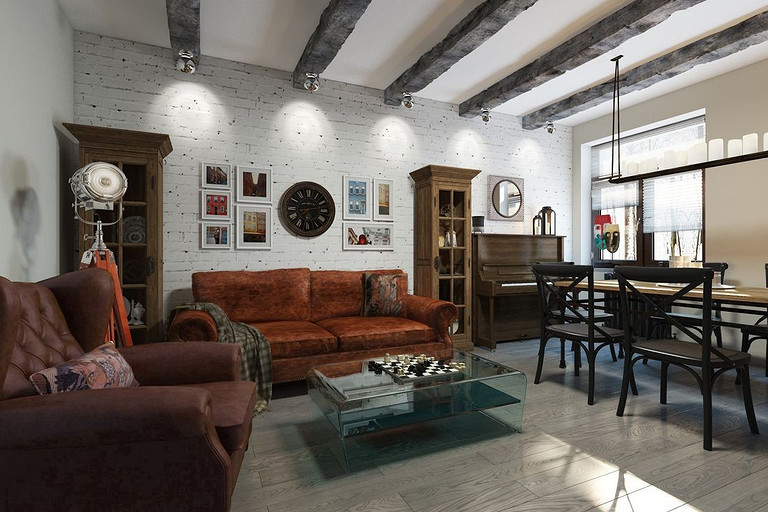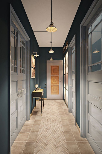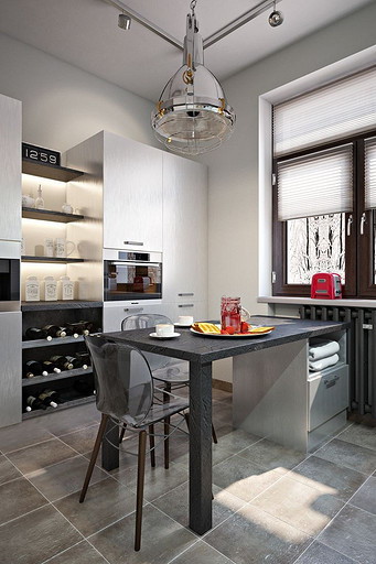 Стильный, современный интерьер был выбран для интересной, неординарной влюблённой пары. Такие заказчики настоящий подарок для любого дизайнера! Они открыты к использованию необычных материалов и цветов. Использовались материалы и предметы мебели с историей, которые вольготно расположились в просторных комнатах сталинского дома. Квартира расположена на первом этаже, поэтому чувствуется связь с историей не только дома, но и города. В такой обстановке легко и уютно неспешно проводить время.