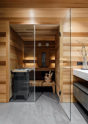 - Сантехника: сауна Klafs, ванна Kaldewei, унитаз Geberit, смесители, душ Dornbracht, трап Viega, раковина Own Concept, гидроёршик Cea