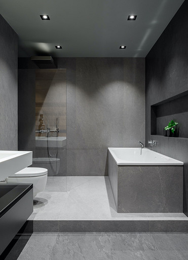 - Стены: плитка Kinetika, краска, штукатурка — Derufa