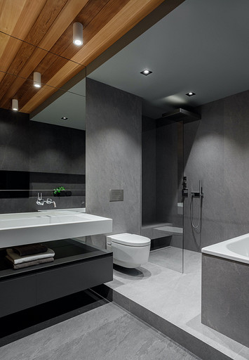 - Сантехника: унитаз Duravit, маленькая раковина Own Concept, смеситель Hansgrohe, гигиенический душ Bossini