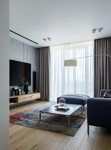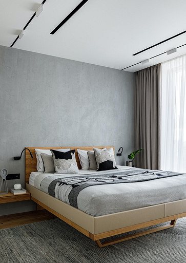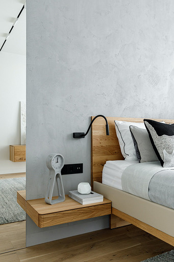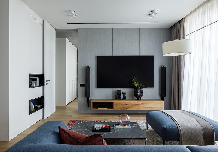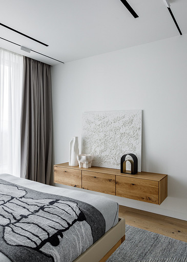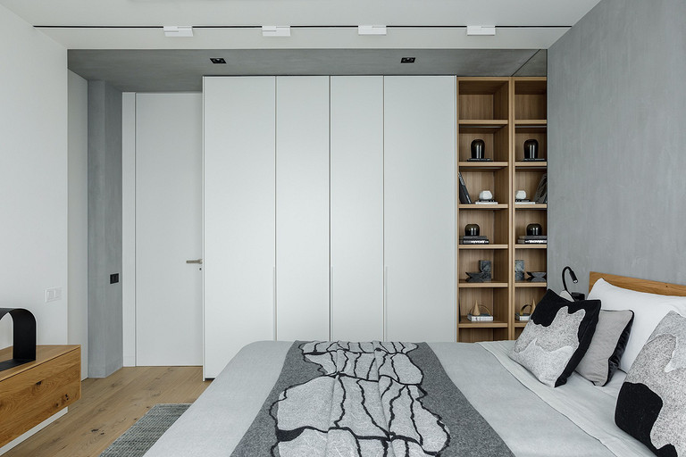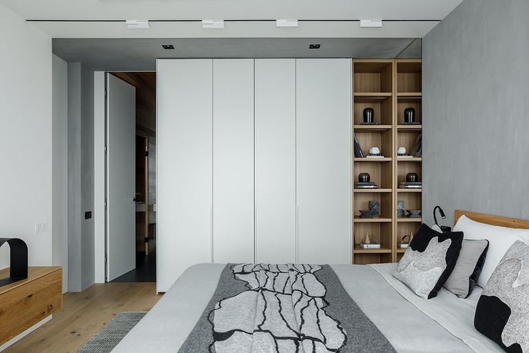 - Мебель: кровать и тумбы — Team 7, тумба напротив кровати — Team 7, шкаф в спальне — Poliform