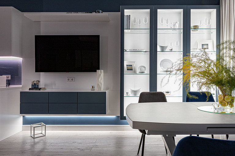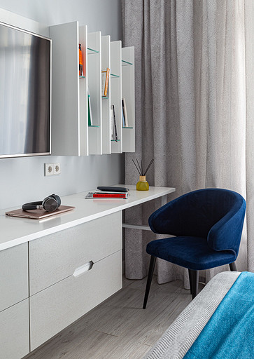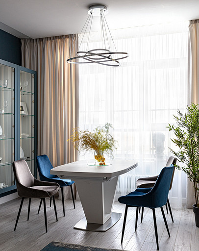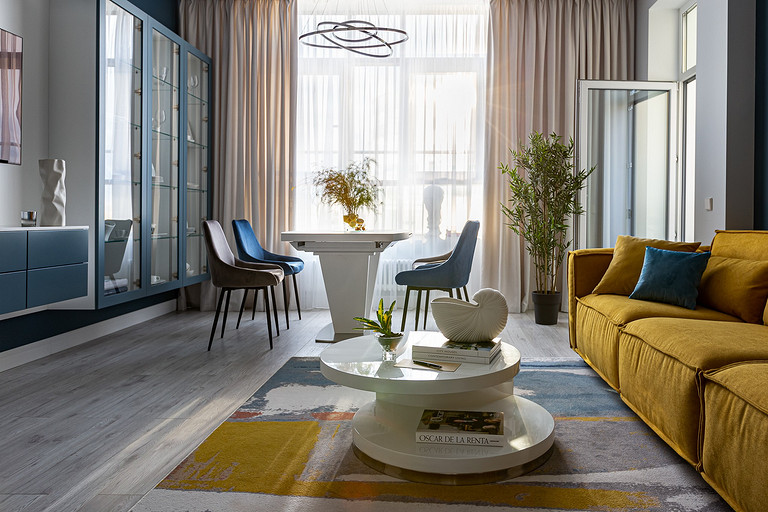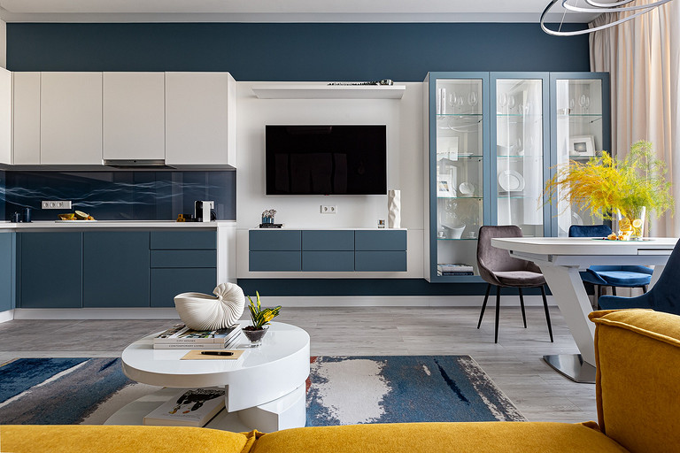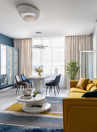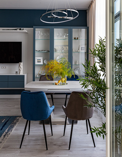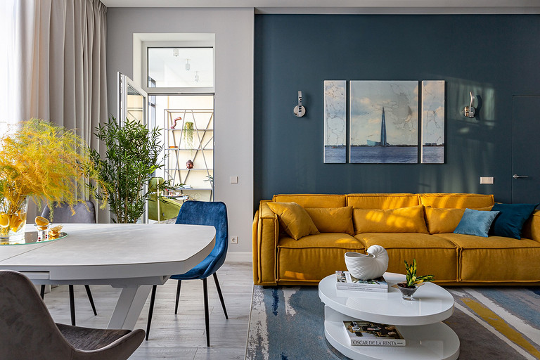 Интерьер квартиры в Санкт-Петербурге в синих тонах с желтыми акцентами выглядит одновременно ярко, но и умиротворяюще. Читать далее...
