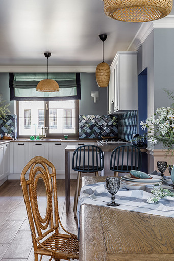 Рациональное распределение пространства и продуманное оформление позволили дизайнеру не только реализовать все пожелания заказчиков, но и подчеркнуть близость коттеджа к Чёрному морю. Читать далее...