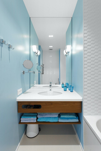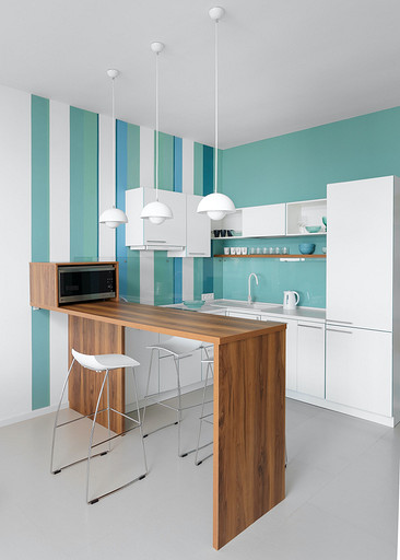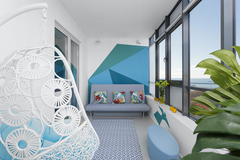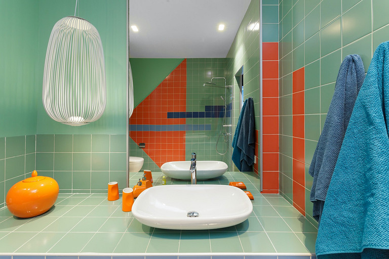 Модный колор-блок в интерьере светлой и просторной квартиры в Сочи