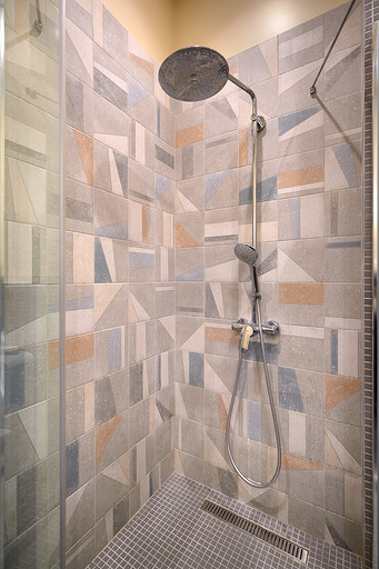 - Стены: краска Little Greene, плитка на фартуке Kerama Marazzi, плитка в ванной комнате Vives