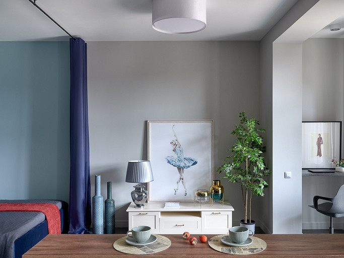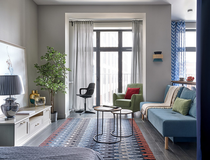 Маленькая квартира для сдачи в аренду с зоной спальни, гостиной и кабинетом на лоджии