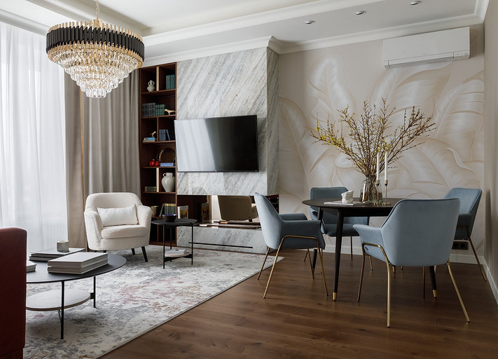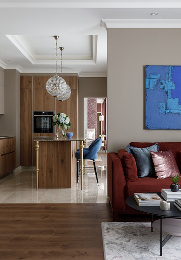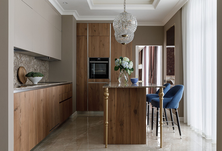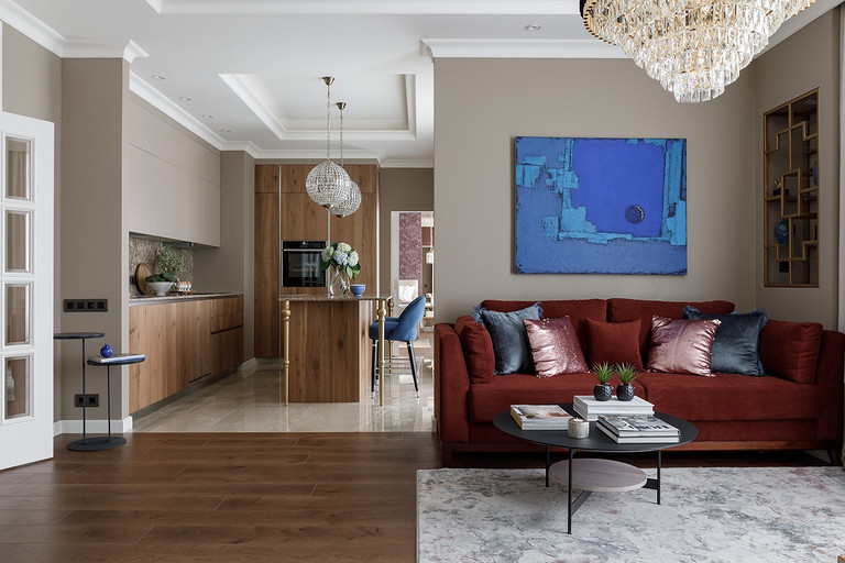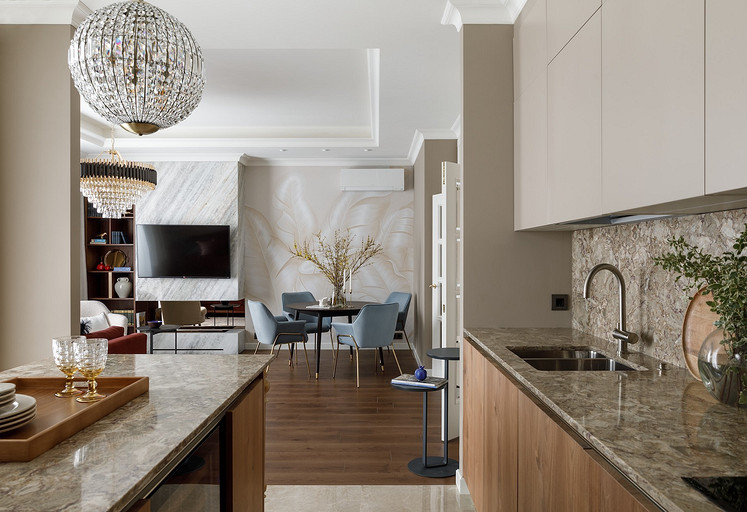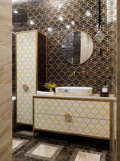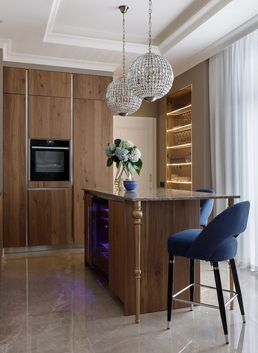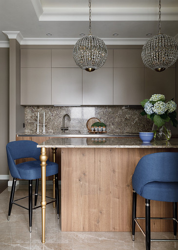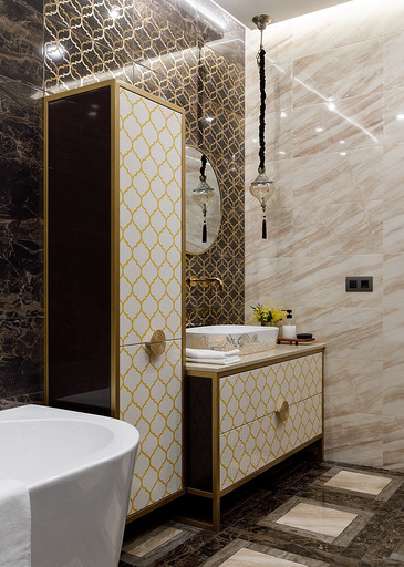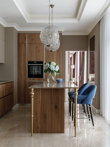 Владельцы хотели получить неоклассический интерьер с ноткой Востока. Так на светлом бежевом фоне стен появились теплые «пряные» цвета в мебели, золотистый металл, формы и узоры, которые напоминают о восточной эстетике. Читать далее...