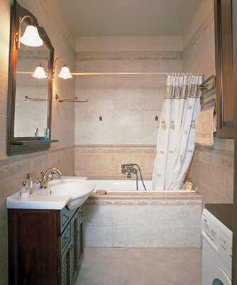 - Пол: мастика (гидроизоляция) «ГЛИМС-ВОДОСТОП», плитка керамическая Marazzi