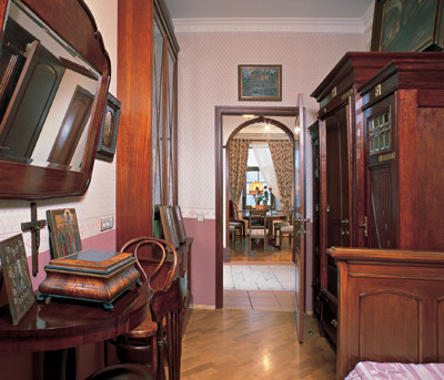 Квартира (72,5 м2) в доме, построенном около ипподрома. Декор, мебель, обои, текстиль — все напоминает уютные английские интерьеры XIX в.