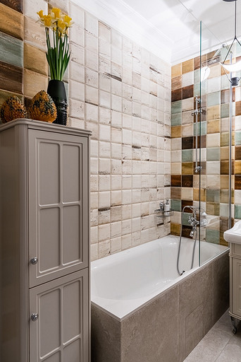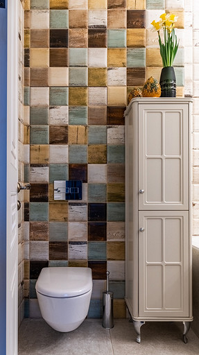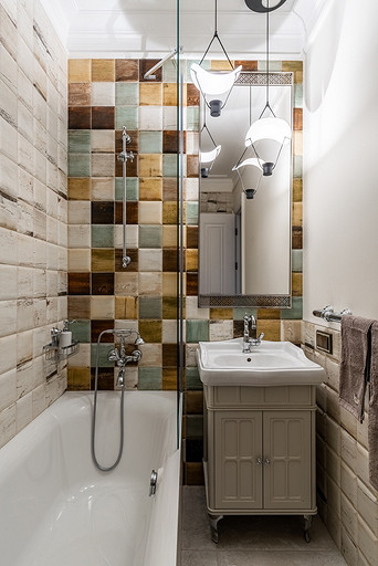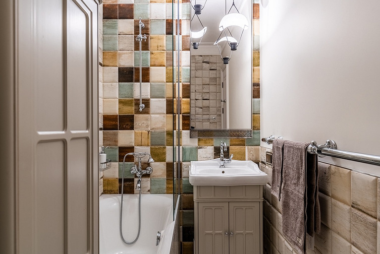 - Стены: плитка Soho Mix, Soho Blanco (Mainzu), краска Ressource