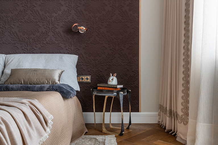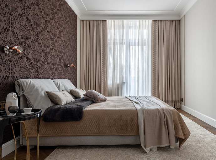 - Мебель: кровать Nathalie (Flou), прикроватные столы «Паужна» (авторская коллекция Светланы Поповой)