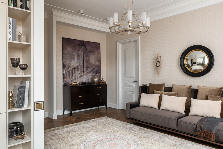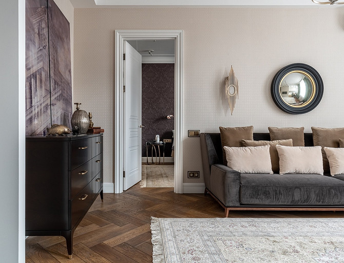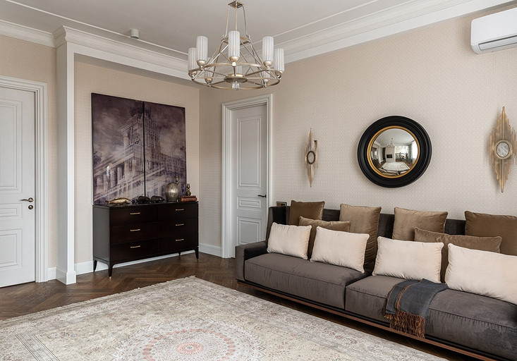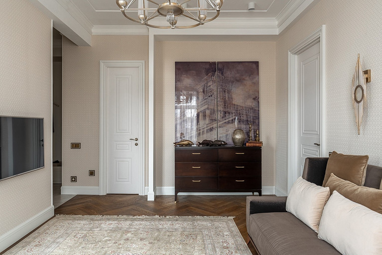 - Аксессуары: ковер Iran Carpets, картина «Москва» (авторская печать на дереве — Владимир Клавихо-Телепнёв), зеркало Eichholtz