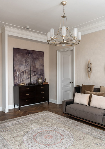 Маленькая московская двушка расположена в одном из красивейших домов на Кутузовском проспекте. Дом являет собой прекрасный образец сталинского ампира. Именно это, а также окружающая архитектура в той же стилистике подсказали лейтмотивы дизайна. Особой темой декора стали знаменитые высотки. Читать далее...