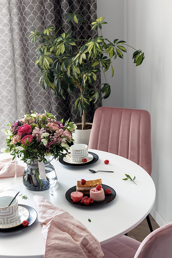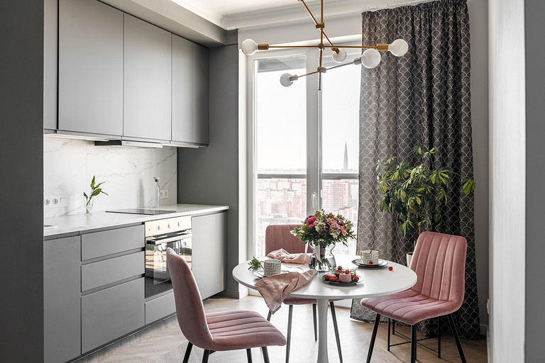 - Декор: посуда и салфетки H&M Home, ваза ИКЕА, графин на столешнице Zara Home
