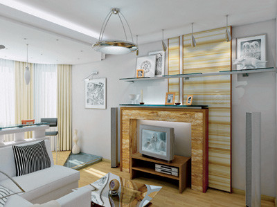 Образ камина вносит в гостиную ощущение уюта, создает композиционный центр, вокруг которого группируются другие элементы интерьера