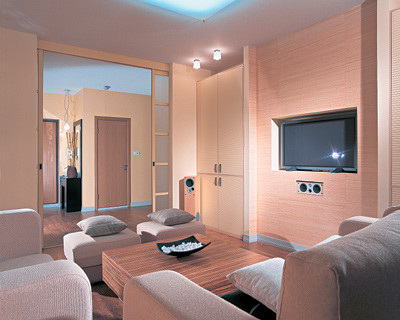 - Мебель: диван, кресла, раздвижная перегородка, шкафы, тумбочки, стол журнальный