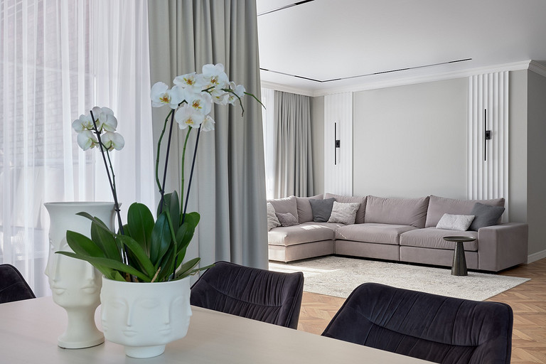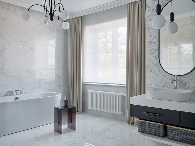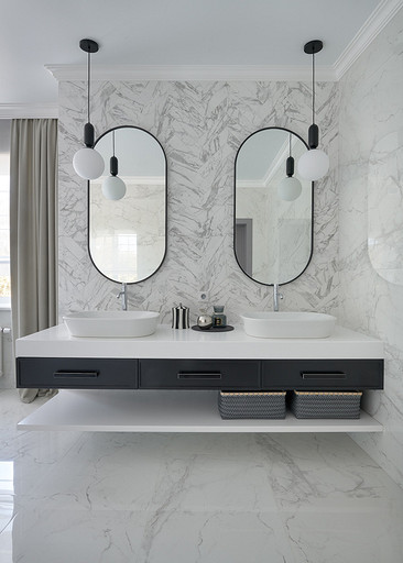 - Стены: краска Lanors Mons, керамогранит Italon, Pamesa, Atlas Concorde, панели «Европласт», декоративные гипсовые панели Artpole, обои Khroma