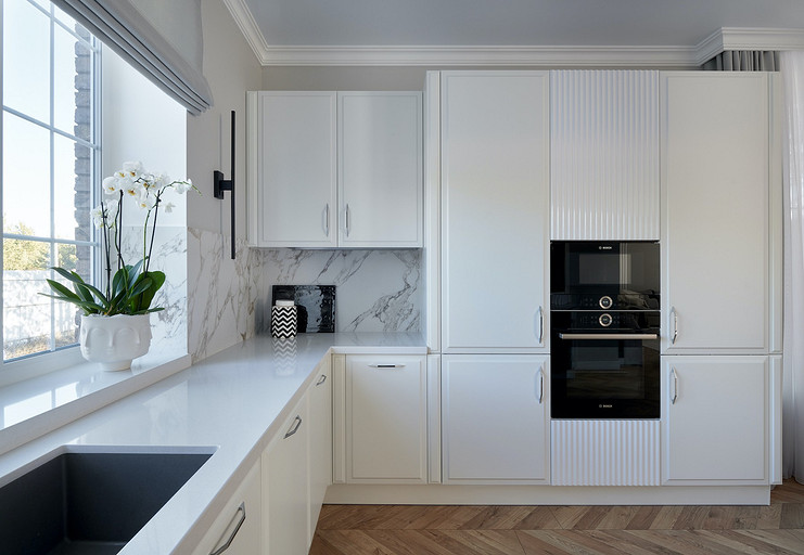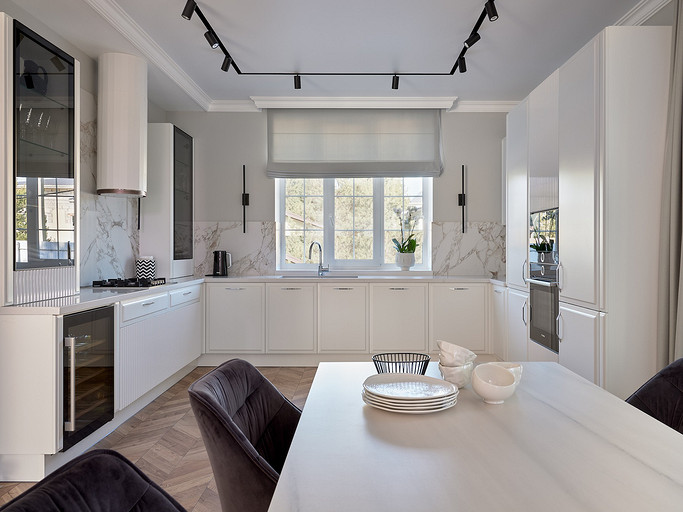 - Мебель: кухня Mossman, табурет в ванной Kartell