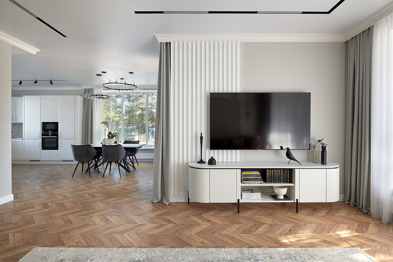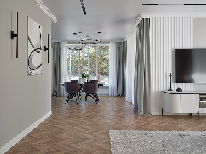 Светлый интерьер в сдержанных тонах, плавные формы, много естественного света — так можно охарактеризовать этот дом. Читать далее...