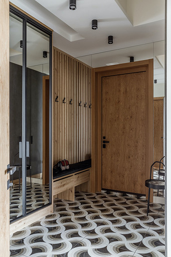 - Пол: паркетная доска Coswick, плитка в прихожей Aparici, плитка на кухне Coen