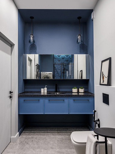 - Мебель: тумба со столешницей и зеркалом — на заказ, табурет Ex.t, шоурум Interio 22