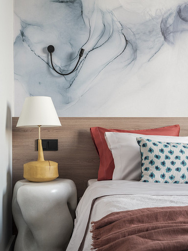 - Текстиль: подушки Loffilab, Amalia home collection, постельное белье и плед Bo Concept, шторы Gonzalo Ferri