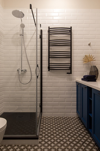 - Сантехника: раковина Laufen, смеситель для раковины, угловой вентиль, U-образный сифон для раковины Hansgrohe, унитаз Laufen, сместитель для гигиенического душа Iddis, душевая стойка Hansgrohe, душевой поддон Liscia Nero, душевая перегородка Vegas-Glass, полотенцесушитель «Сунержа»