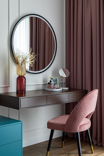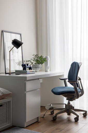 - Мебель: кровать Sonberry, стол и комод ИКЕА, рабочий стул — собственность заказчиков с заменой обивки