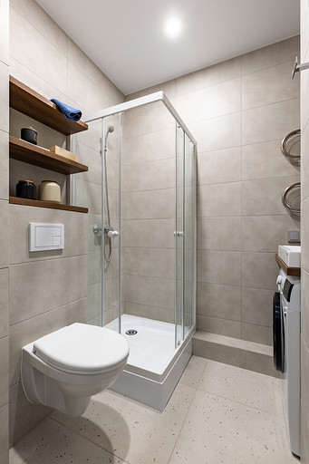 - Сантехника: инсталляция унитаза Cersanit, душевая Metakam Universal, смеситель ИКЕА, раковина Paulmark