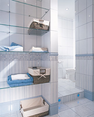 - Стены: плитка керамическая Saloni, декоративные вставки
