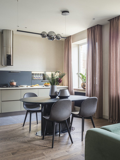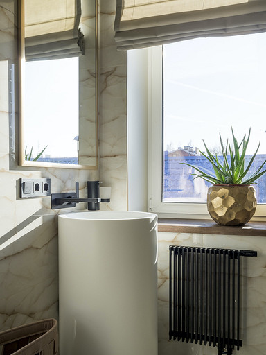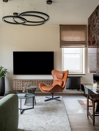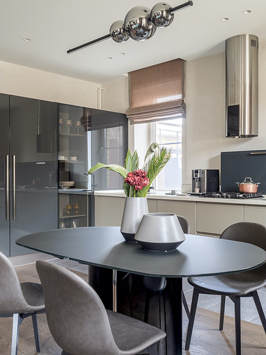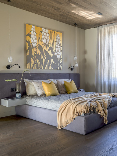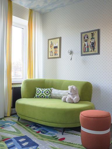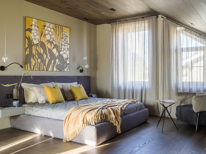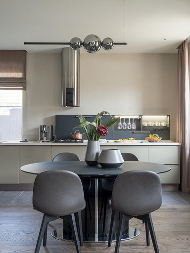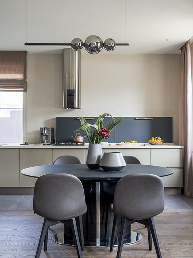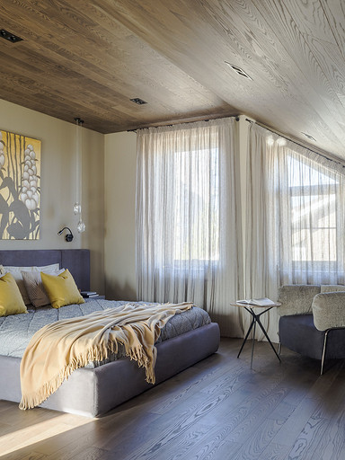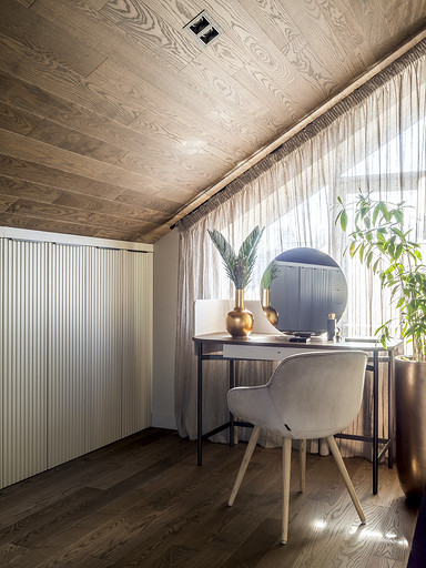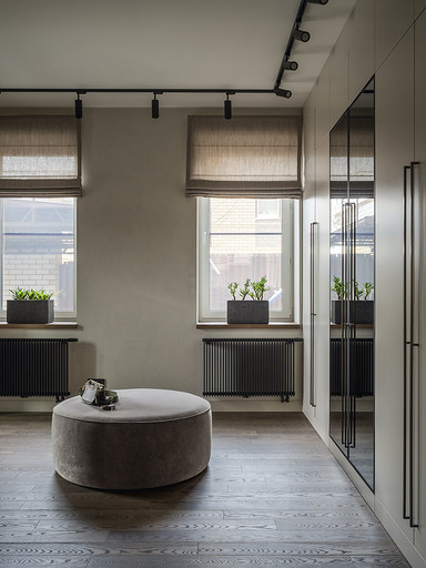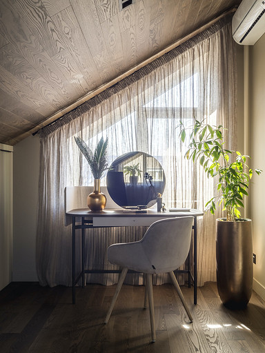 - Мебель: туалетный столик — Novamobili, кухня — Giulia Novars, диван в гостевой — фабрика «8 марта», кофейный столик — Tomasella, вешалка для одежды — Eichholtz, обеденные стулья — Connubia, обеденный стол, скамейка, кресло в спальне, корзина из фетра, кресло в гостиной — Calligaris, диваны, пуф, кофейный столик, дровница — Yachtline, диван, тумбочки в гостиной — частное производство, ручки — Latuning, корпусная мебель — на заказ по эскизам дизайнера