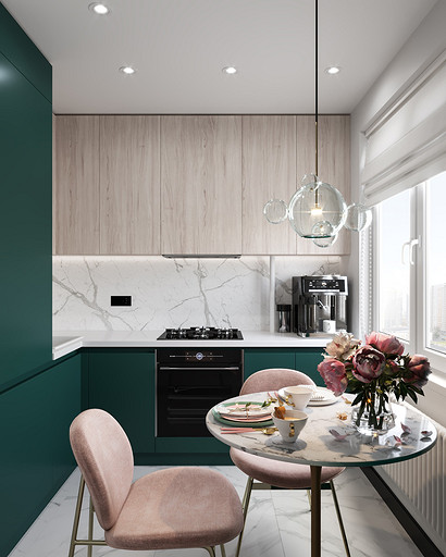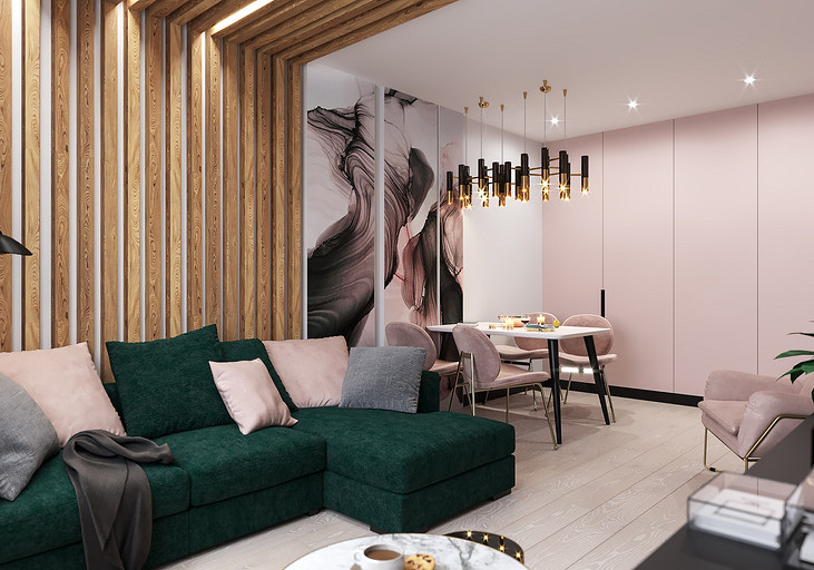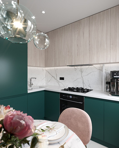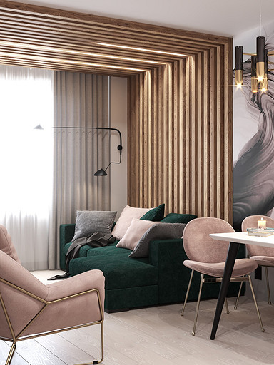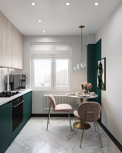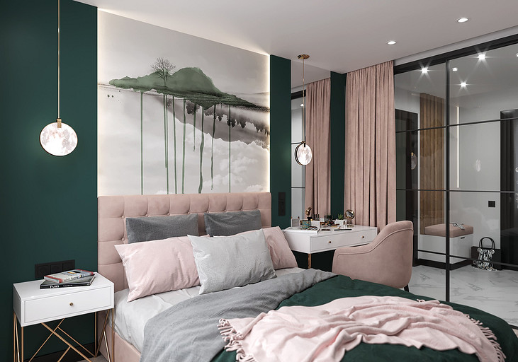 Хочу Вас познакомить с проектом на станции метро Планерная, квартира 45,2 кв.м. Я так давно мечтала сделать проект с акцентами на стенах, причем в изумрудных и пудровых оттенках.