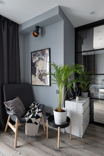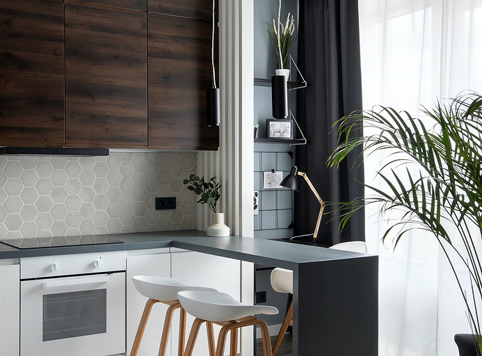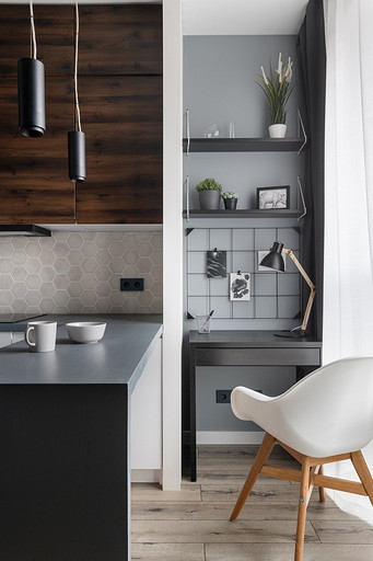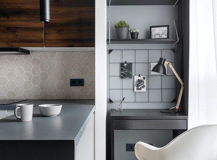 Маленькая квартира, в которой уместили кухню-гостиную, спальню и рабочую зону