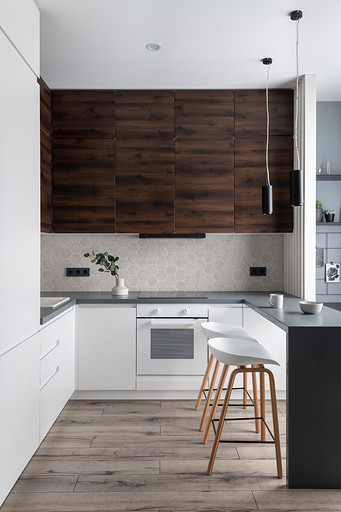 - Мебель: индивидуальное изготовление — Fancy Studio, барные стулья — Wooddi, отдельно стоящая — ИКЕА