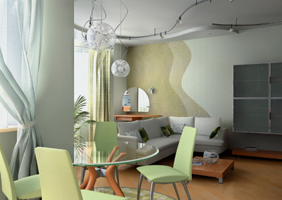 с эркером окрашивается в зеленоватые тона. Такой прием превратит даже маленький островок живых растений