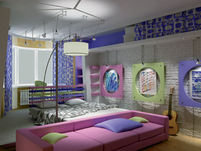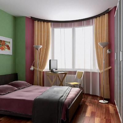 Цветовая гамма обеспечивает приятный полумрак, торшеры создают локальное освещение, не нарушая спокойной обстановки спальни
