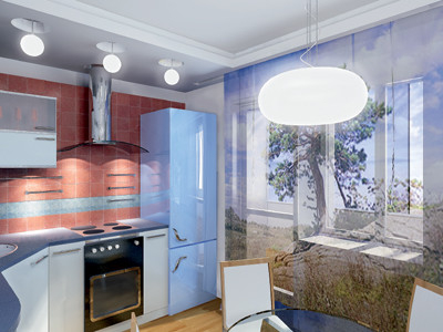 Штора-пейзаж позволяет связать разрозненные и разноцветные элементы интерьера в гармоничную картину