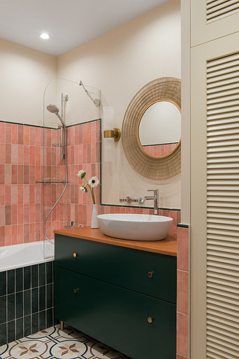 - Стены: краска Little Greene, плитка Equipe