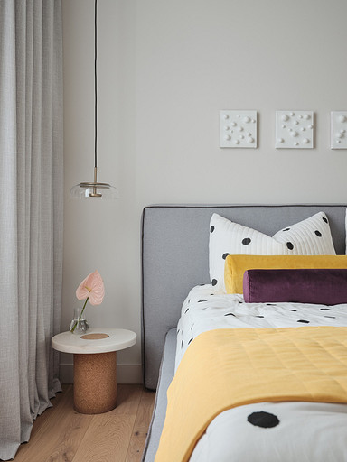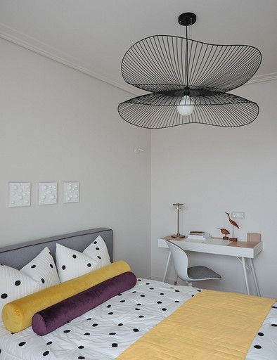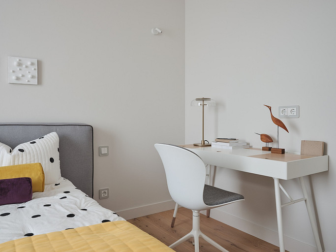 - Мебель: кровать Felis, письменный стол и кресло BoConcept, гардероб Dantone Home, прикроватный столик Frama