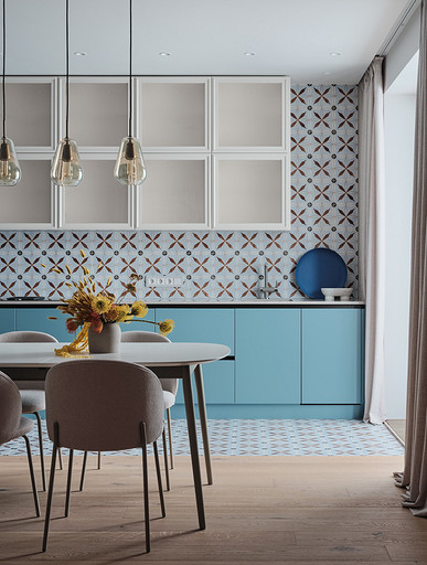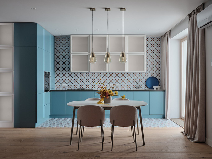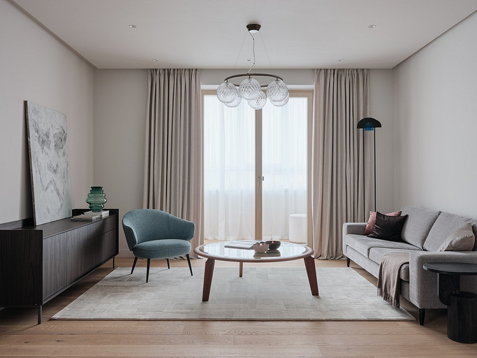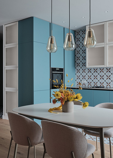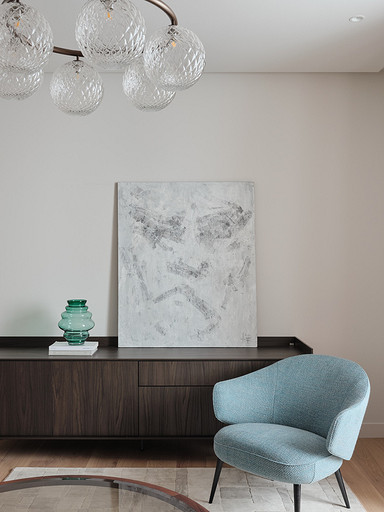 - Мебель: кухонный гарнитур и витрины фабрика Home Cucine, обеденная группа, кресло и диван BoConcept, журнальный стол Ulivi, комод Zalf, придиванный столик Ferm Living
