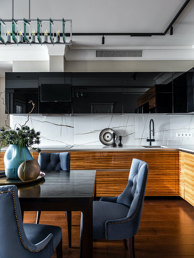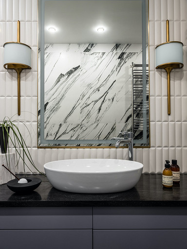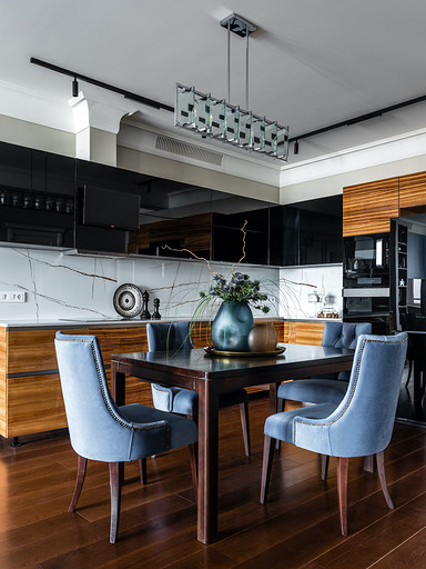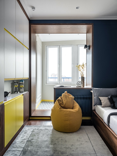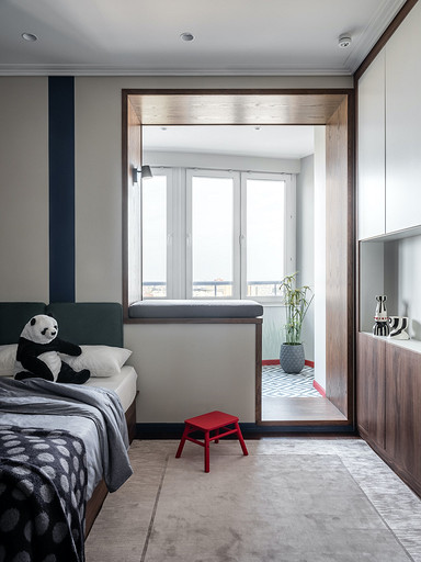 - Мебель: кухня — чешские кухни Hanak, диван Nicoletti, встроенная мебель — на заказ, столярное производство, стол и кресло на балконе в гостиной — La Redoute, кровать Rooma design&furniture, тумбочки ИКЕА, столик Jysk, табурет Plopp Hay, Skanddyy