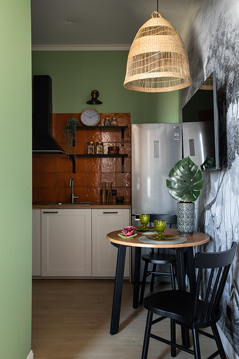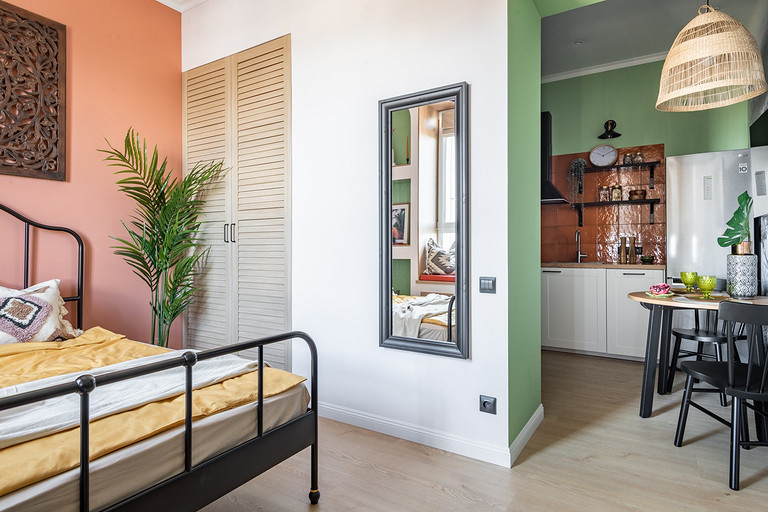 Дизайнеры расположили на 35 квадратах спальню, кухню-гостиную и кухню и не стали использовать в маленьком пространстве лаконичные светлые оттенки. Здесь цвет — главный герой. Читать далее...